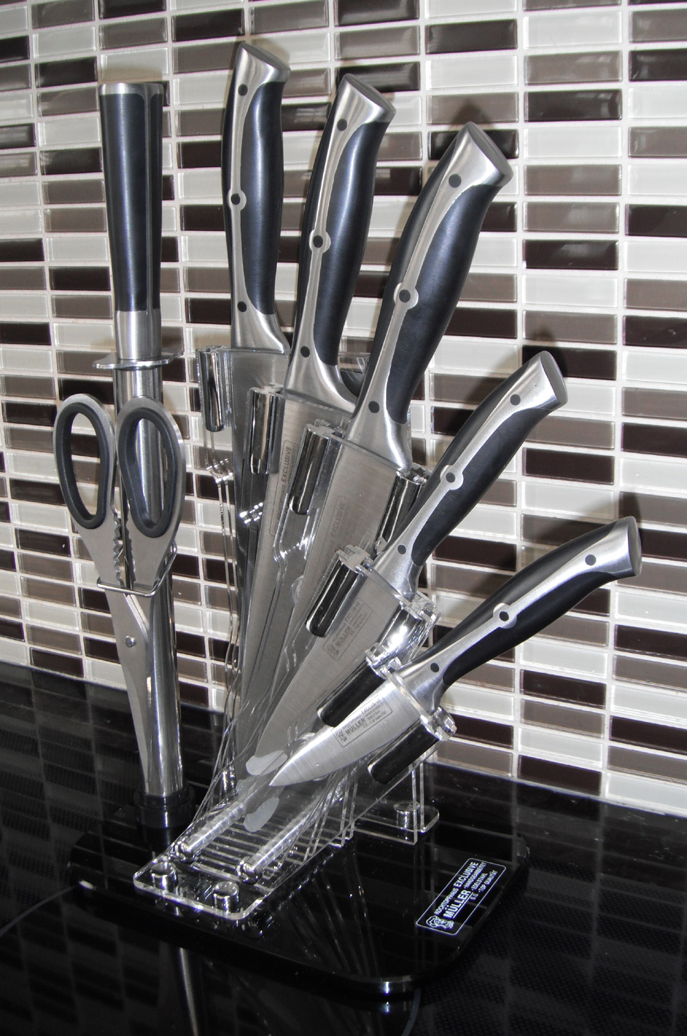 The Handle - Gracefully sculptured handles provide the safest and surest grip. This special seamless Polypropylene material is virtually indestructible, and easy to clean. The blade and handle are tested under 1000 pounds of pressure! Slip resistant finish and dishwasher safe.