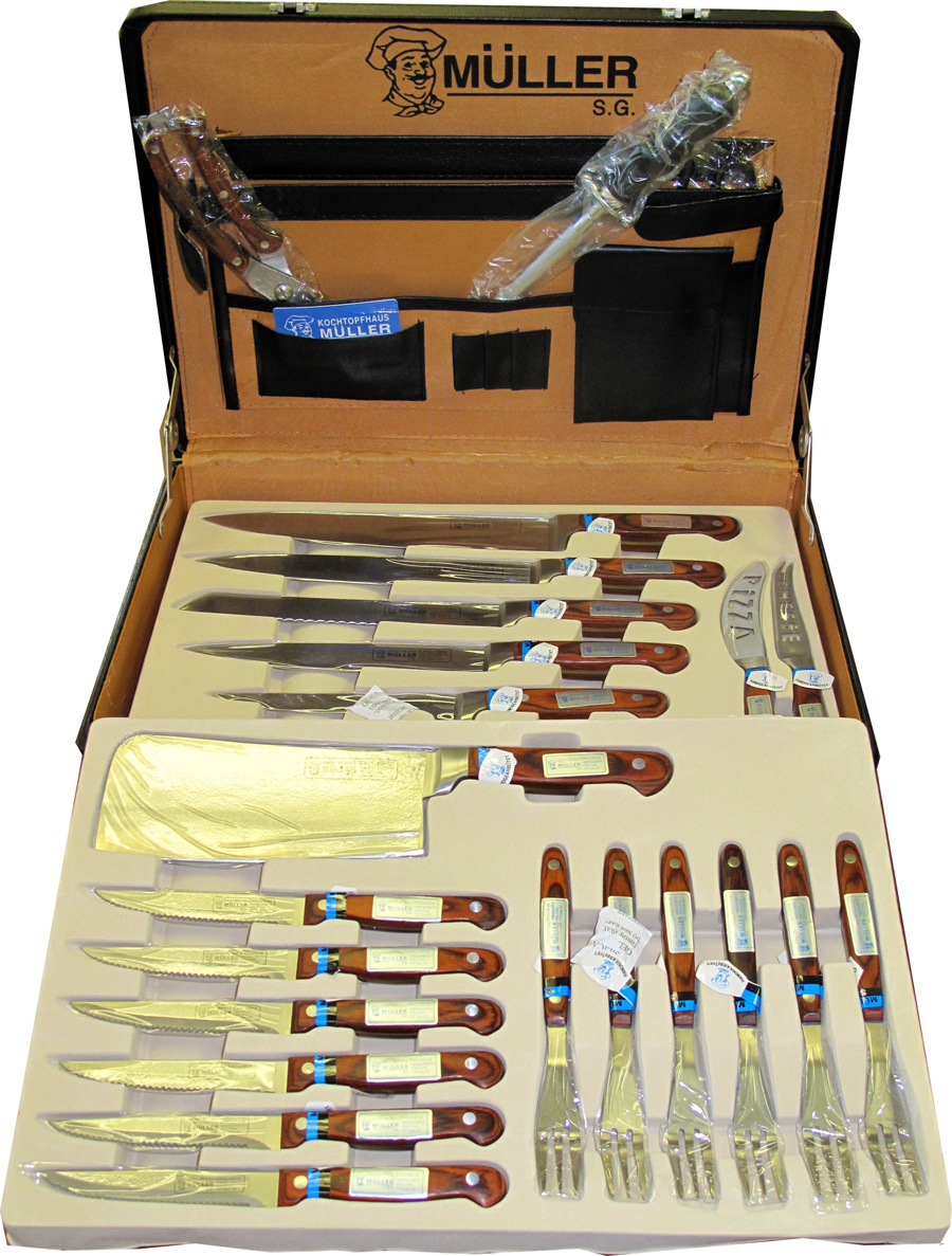 Beware of the 'knock-offs'. There are many imitations of the authentic Muller cutlery on the internet. There is a way to tell if it is authentic. Call for details.