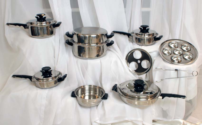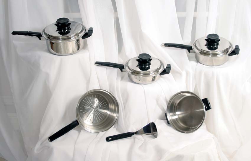 With Vacumatic cookware the vapor surrounding your vegetables never reach the boiling point, thus preserving all the natural goodness and vitamins of your vegetables. All your meats are cooked without the oils and butter. Cooking the healthy greaseless way is only possible with expensive quality surgical steel waterless cookware.