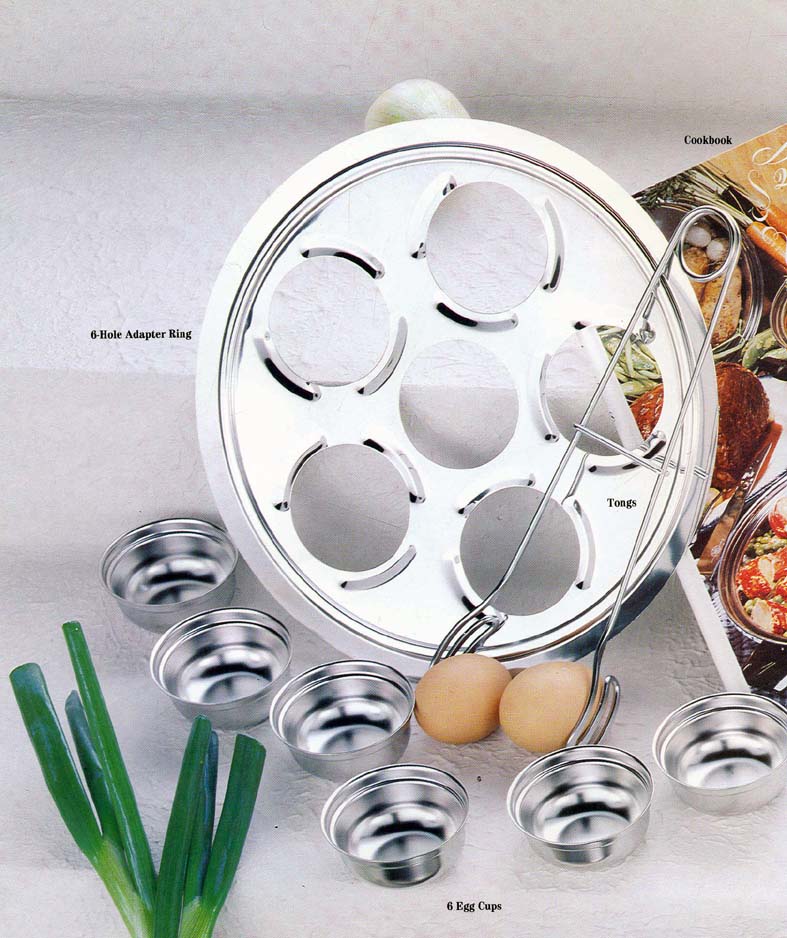 This 19 piece set is the same as the 11 piece but includes your steamer egg poacher rack, 3 hole poaching rack, egg cups and tongs.